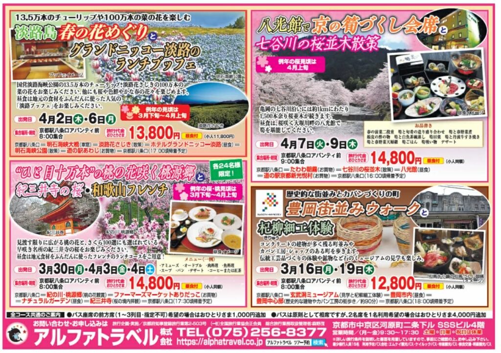 最新の旅行チラシ 2月20日(金)京都新聞イルミル掲載 2026 2/19 チラシ 2026年2月19日 2月20日(金)、京都新聞イルミル掲載のチラシです。各ツアー申込は、ツアー予約ページからお願い致します。 チラシ 周りの方にもぜひお知らせください! URLをコピーする URLをコピーしました! URLをコピーしました! 年末年始のお休みについて 関連記事関連する記事はまだ見つかりませんでした。