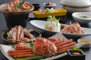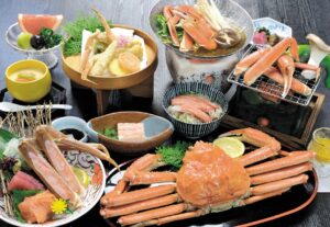 料理が好評の老舗料亭でおひとりさま約2.5杯分のボリュームたっぷり蟹づくし料理をお楽しみください。